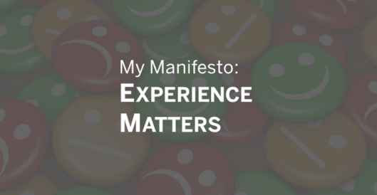 It seems appropriate for my new manifesto to take on the name of this blog, which I started in June 2007. Over the course of writing 1,684 posts, publishing many, many research reports, and working with hundreds of companies, I’ve sharpened my thinking about the critical role that experience plays in how organizations succeed and human beings thrive. I’ve captured these learnings in the four core beliefs of my Experience Matters Manifesto:
