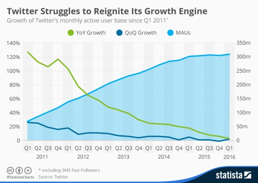 Source: • Chart: Twitter Struggles to Reignite Its Growth Engine | Statista