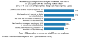 What we need to do is to envision the digital future of your business. Without a compelling vision of where you are going and why it is imperative, you will probably be painting race stripes on a 20 year old Chevy. What assets will be valuable in a digitally-transformed business? How can you transform customer experience? Internal operations? Your business model? How can units work differently – and work together differently – in a more connected way?