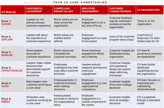 EMBED In this final stage of CX maturity, companies have integrated CX into everyday decisions and practices. These companies are capable of delivering great CX because they have articulated and fulfilled their brand promises to customers and have clearly expressed their organizational purpose to both employees and customers.