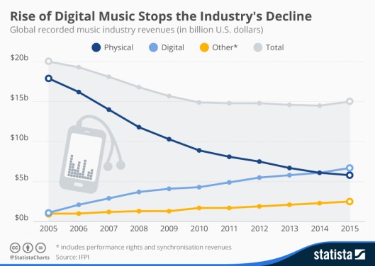 Source: • Chart: Rise of Digital Music Stops the Industry’s Decline | Statista