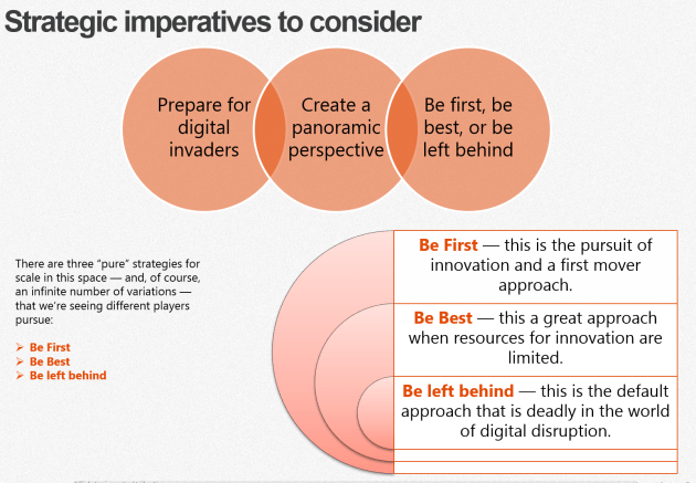 Strategic issues to be considered is having a knowledge that digital invaders exist and that they are experts at rapid disruption. As a result, the entire C-suite now sees digital as the biggest game-changer. It can fuel growth, but drastically change the landscape.