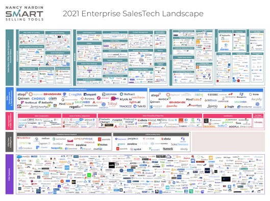 First, the 2021 Enterprise SalesTech Landscape above, produced by Nancy Nardin of Smart Selling Tools, was released last week. It now features 1,078 solutions across 45 unique categories.